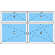 024 Fenster vierflüglig, dreh und dreh-kipp mit zwei kipp-baren Oberlichtern