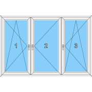 016 Fenster dreiflügelig, dreh-kipp, dreh und dreh-kippbar mit 2 Pfosten