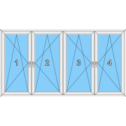 021 Fenster vierflügelig, alle Flügel dreh-kippbar mit drei Pfosten